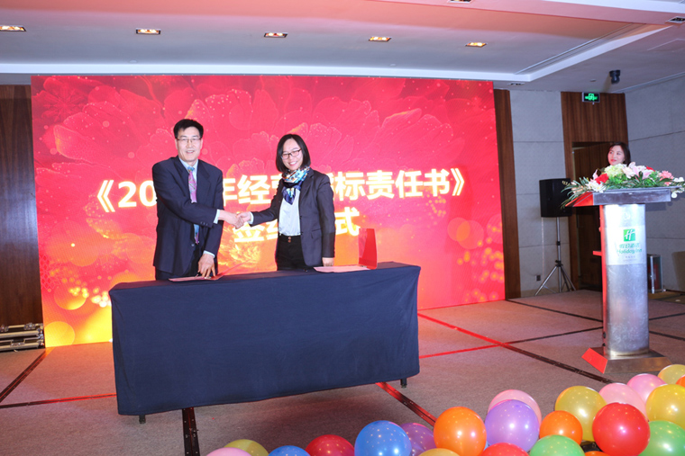 工作总结会后,为保证公司2018年经营指标的顺利完成,使公司整体持续、快速发展的同时,充分调动各经营体积极性,实现企业与员工之间的共赢,总经理与各经营体负责人签订《2018年经营指标分解承接书》。