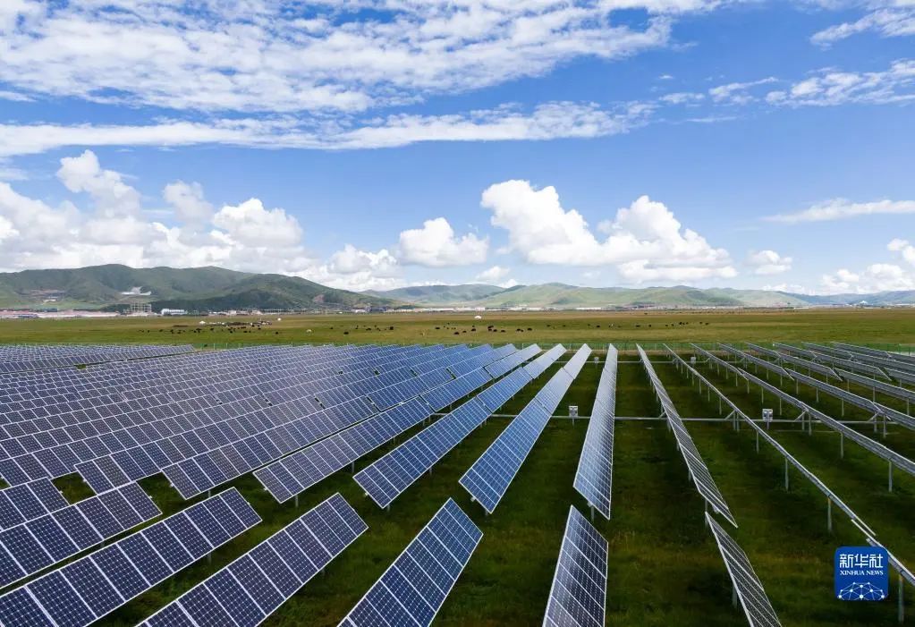 这是位于四川省阿坝州红原县邛溪镇麻萨村的花海光伏电站(2021年8月14日摄,无人机照片)。新华社记者 江宏景 摄